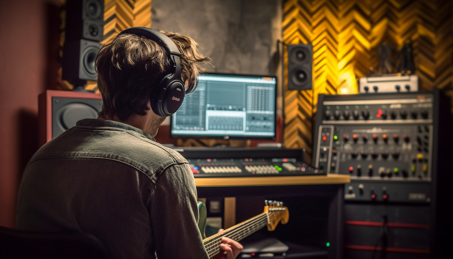 Innenakustik in einem komplett eingerichteten Studio inklusive unbeweglichem Mischpult AMEK M3000
